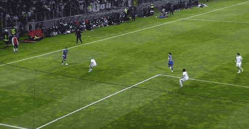 上半场补时阶段,雷米奇力压波利塔诺头球攻门,皮球稍稍偏出。